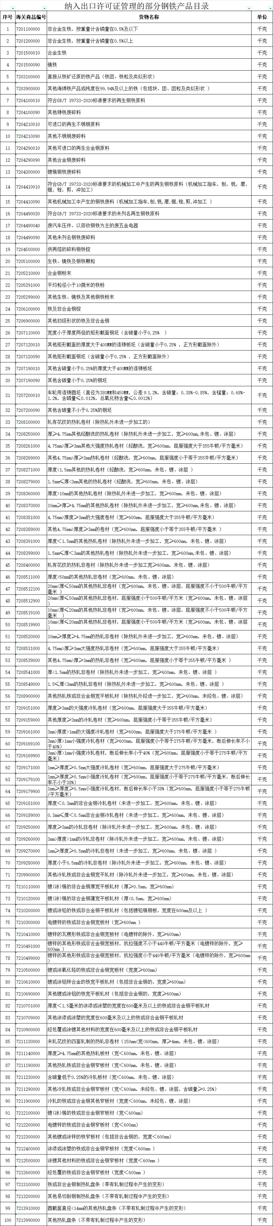 Attachment: Catalogue of Selected Steel Products Subject to Export License Management